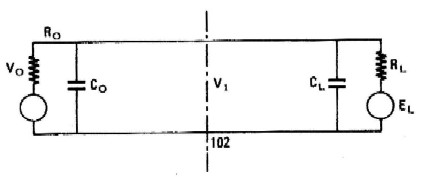 -- Le générateur a une impédance de source comprise entre 50 et 150 W, une résistance entre extrémités (en court-circuit 102) de 150 ± 15 W, pour une charge résistive de 100 W la tension doit être de 0,55 V (± 20 %); le temps d'établissement de l'état doit être à la fois inférieur à 40 ns et inférieur à 1 % de la durée nominale d'un élément de signal.