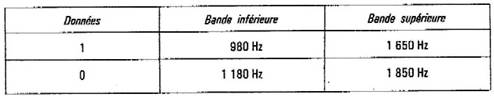 La transmission bidirectionnelle simultanée s'effectue en utilisant deux bandes de fréquence centrées respectivement sur 1080 et 1750 Hz.