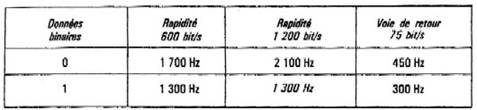 Les données binaires 0 et 1 correspondent aux fréquences suivantes données dans le tableau 7.2.