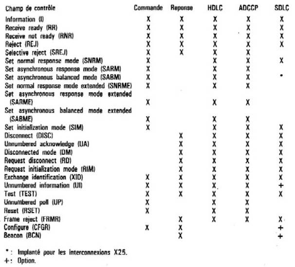 L'ANSI (American National Standards Institute) a aussi normalisé un protocole de liaison : ADCCP qui ressemble fortement à HDLC et à SDLC. Nous avons représenté dans la figure 8.7 les différentes commandes et réponses qui existent dans HDLC, SDLC et ADCCP pour les comparer.